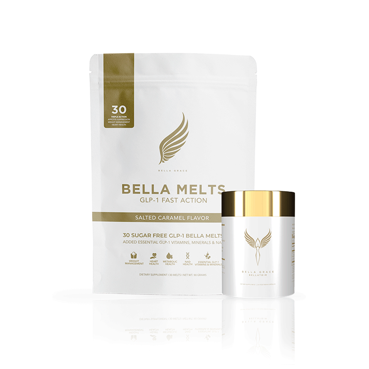 Ovaj paket prirodno aktivira vlastitu proizvodnju GLP-1 u vašem tijelu bez igala ili ozbiljnih nuspojava. Zajedno, Bella Melts i BellaTrim podržavaju pametniji i održiviji pristup kontroli tjelesne težine smirivanjem žudnje, smanjenjem hormona stresa i podržavanjem metaboličkog zdravlja.